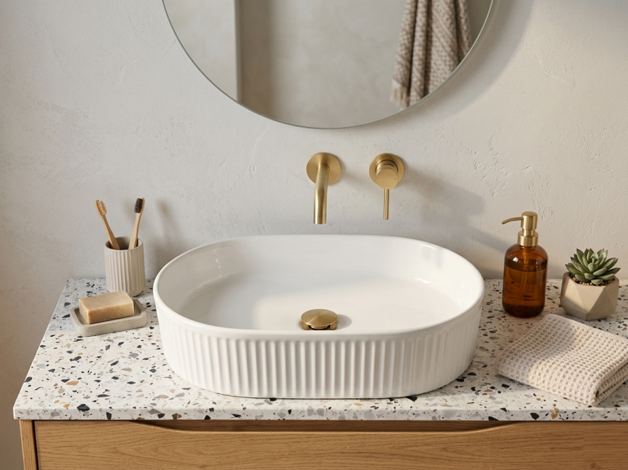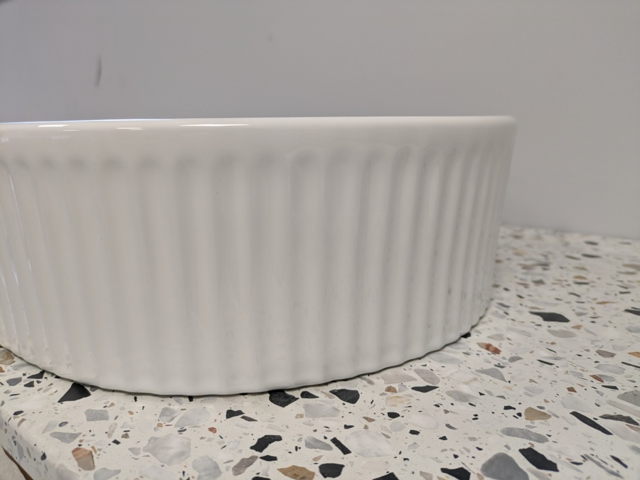 La particularité de la gamme BEYOND réside dans son relief cannelé. Ce travail de la céramique joue avec la lumière pour créer du rythme et de la profondeur dans votre décoration. Que vous l'installiez sur un plan de travail en bois massif pour un look organique ou sur du terrazzo pour un esprit rétro-chic, elle s'adapte à toutes vos envies de rénovation.