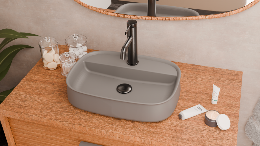 Sa forme rectangulaire adoucie et son coloris Gris clair mat sont pile dans la tendance actuelle des intérieurs zen et contemporains. La couleur est facile à associer avec différents styles de robinetterie et de mobilier.