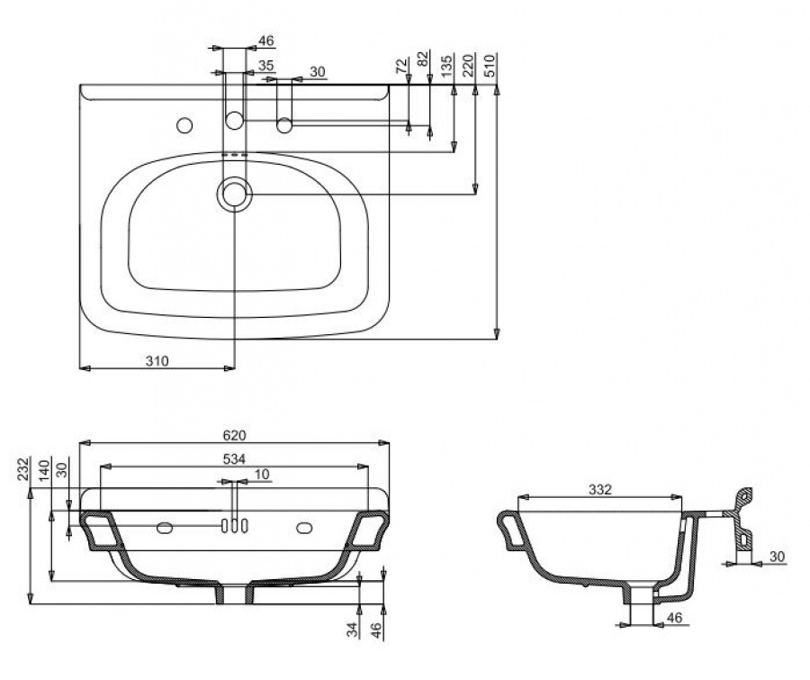 Dimensions : L620 x P510 x H232 mm